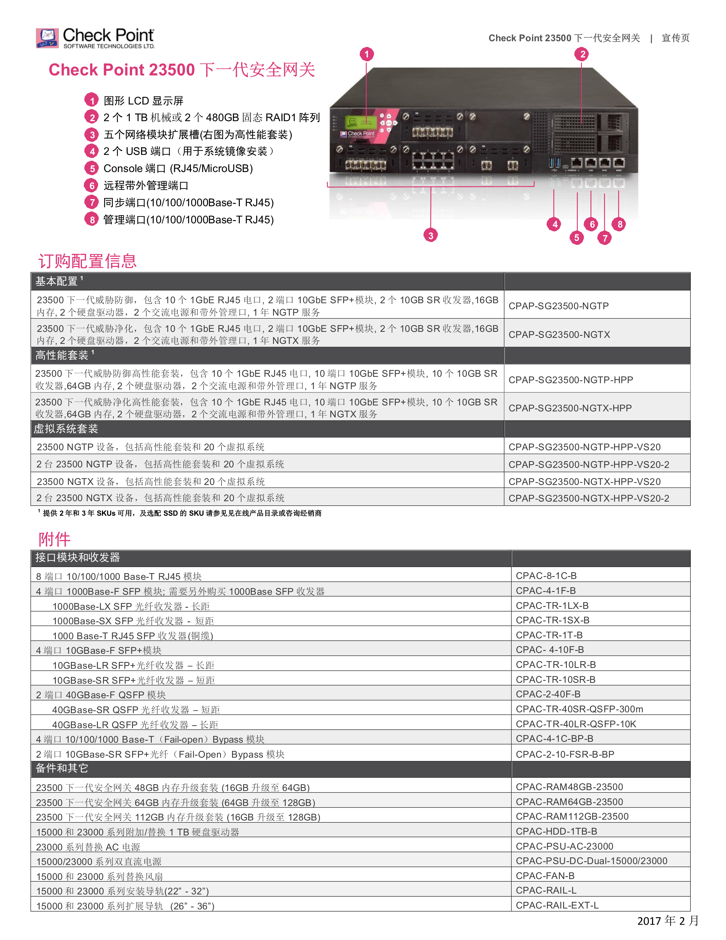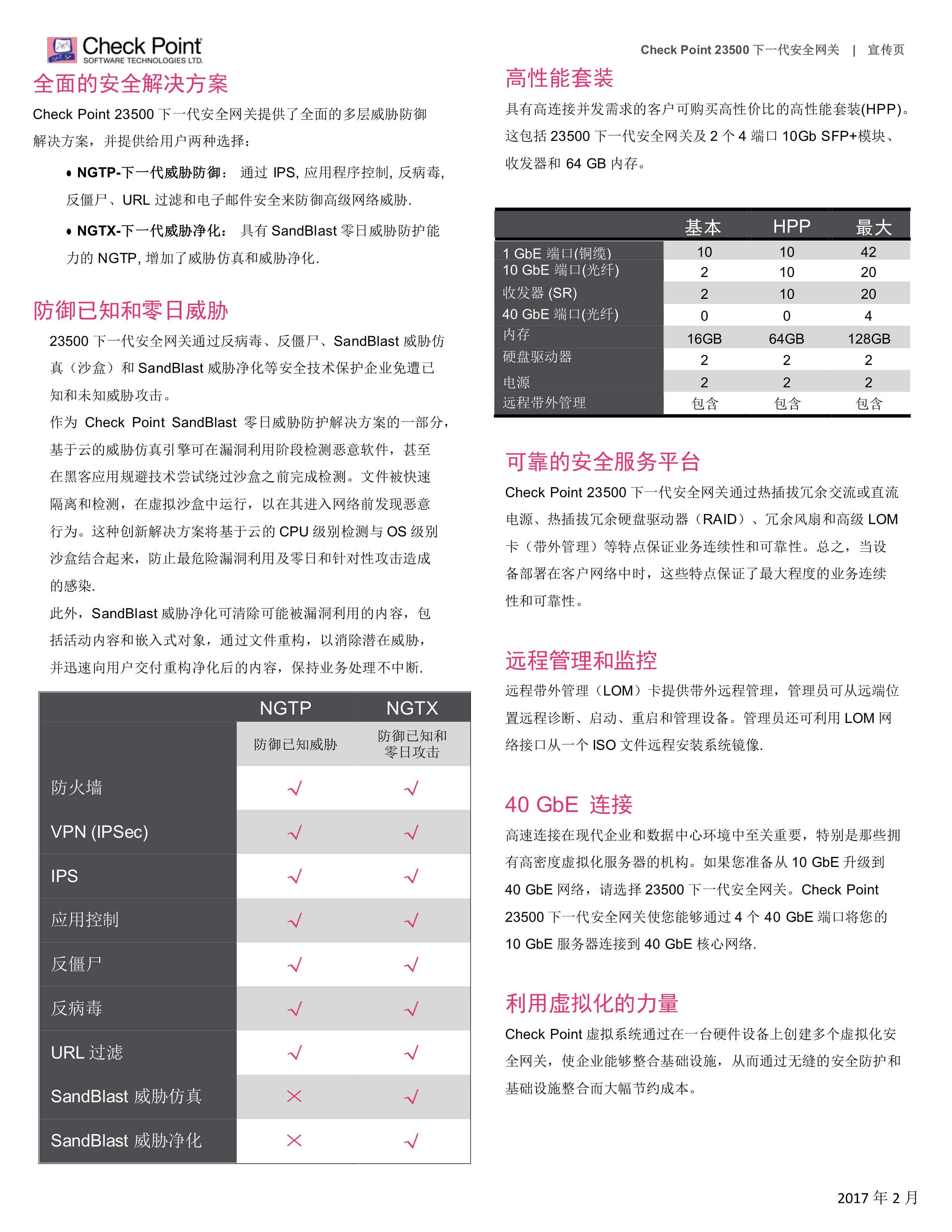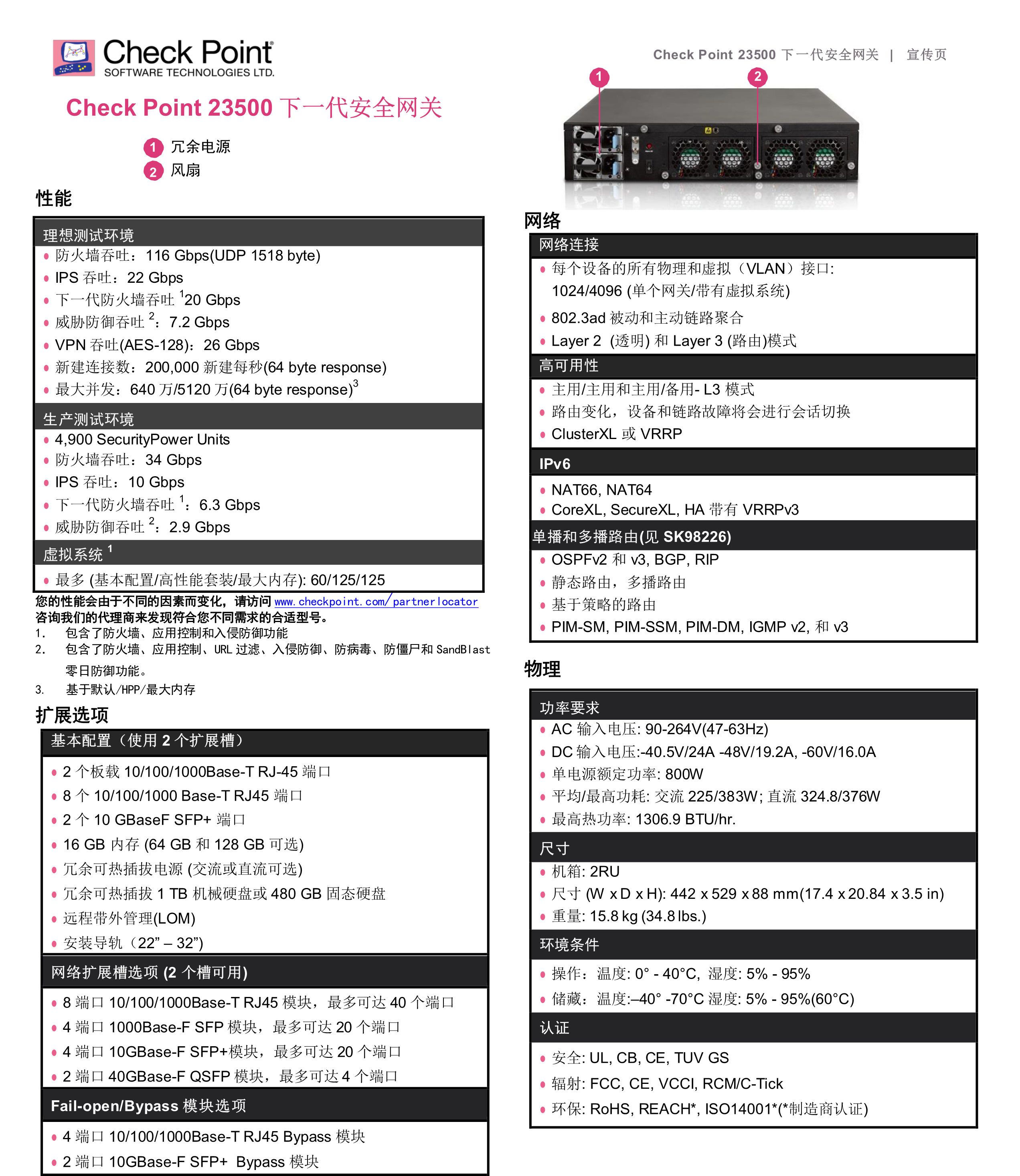 Check Point 23500下一代安全網(wǎng)關(guān)在數(shù)據(jù)中心級別的全新硬件架構(gòu)上融合了最全面的安全威脅防護(hù),確保設(shè)備的可靠運行時間最大化,保護(hù)企業(yè)和數(shù)據(jù)中心網(wǎng)絡(luò)的安全。23500下一代安全網(wǎng)關(guān)是一種2U設(shè)備,具有五個 I/O 擴(kuò)展槽,同時具備高端口密度,冗余交流或直流電源和風(fēng)扇, 2個1TB機械硬盤或2個480 GB固態(tài)硬盤組成的RAID1陣列和遠(yuǎn)程帶外管理(LOM)。如果您準(zhǔn)備從10 GbE 升級至40 GbE網(wǎng)絡(luò),23500下一代安全網(wǎng)關(guān)能完美滿足您的需求。