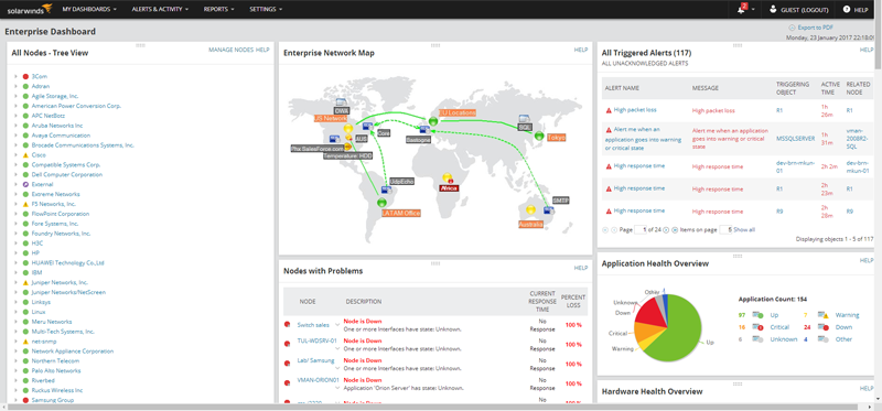 SolarWinds Orion Network Performance Monitor(NPM)是集網(wǎng)絡(luò)監(jiān)測(cè)、設(shè)備性能維護(hù)管理、故障監(jiān)控、網(wǎng)絡(luò)實(shí)時(shí)流量監(jiān)控和歷史數(shù)據(jù)統(tǒng)計(jì)、匯總和歷史數(shù)據(jù)分析等功能于一體的網(wǎng)絡(luò)管理系統(tǒng)。
