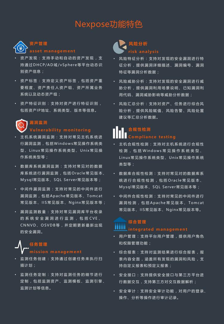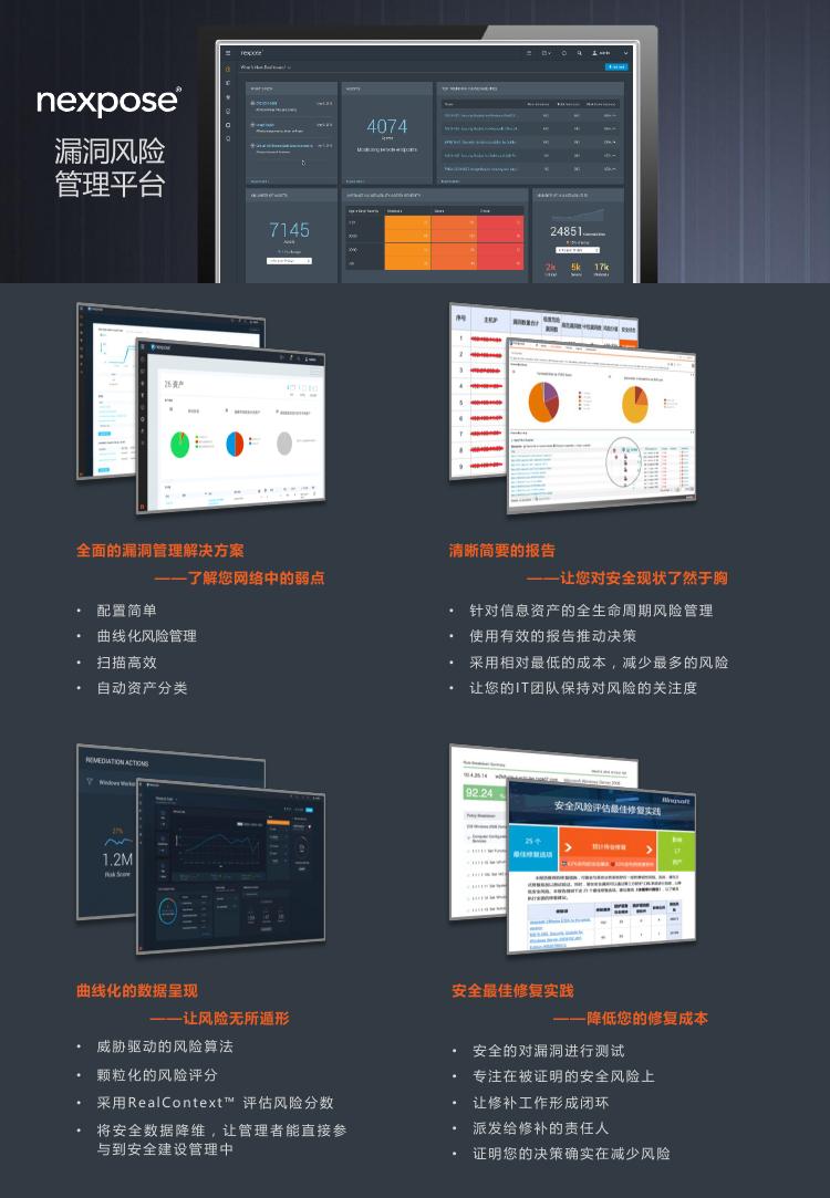 如果不能發(fā)現(xiàn)、確認(rèn)風(fēng)險并確定其上下文環(huán)境,也就談不上降低風(fēng)險。Nexpose 可以動態(tài)發(fā)現(xiàn)您的整個攻擊面,并找出您當(dāng)前忽略的漏洞。確定您的漏洞是否可被利用以及是否已成功部署了補償控制措施,以了解您的威脅暴露程度。確定風(fēng)險的上下文環(huán)境,了解現(xiàn)代數(shù)字業(yè)務(wù)所面臨風(fēng)險的真實情況。